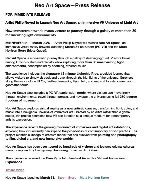 “Philip Noyed Invites Everyone to an Extraordinary VR Experience as He Launches Neo Art Space.” View Article